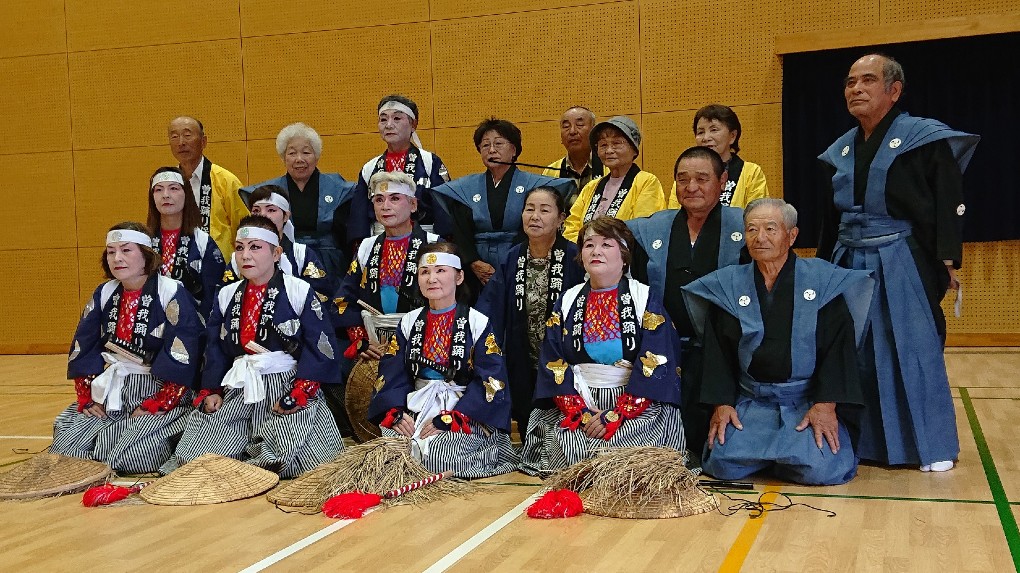 戦前までは、大炊田地区の長男だけが踊っていたそうです。その後、戦中には男性に代わり、女性が引き継ぐ流れになりました。最近では、大炊田地区の男性も保存会に入られ週に一度の練習に励まれています。