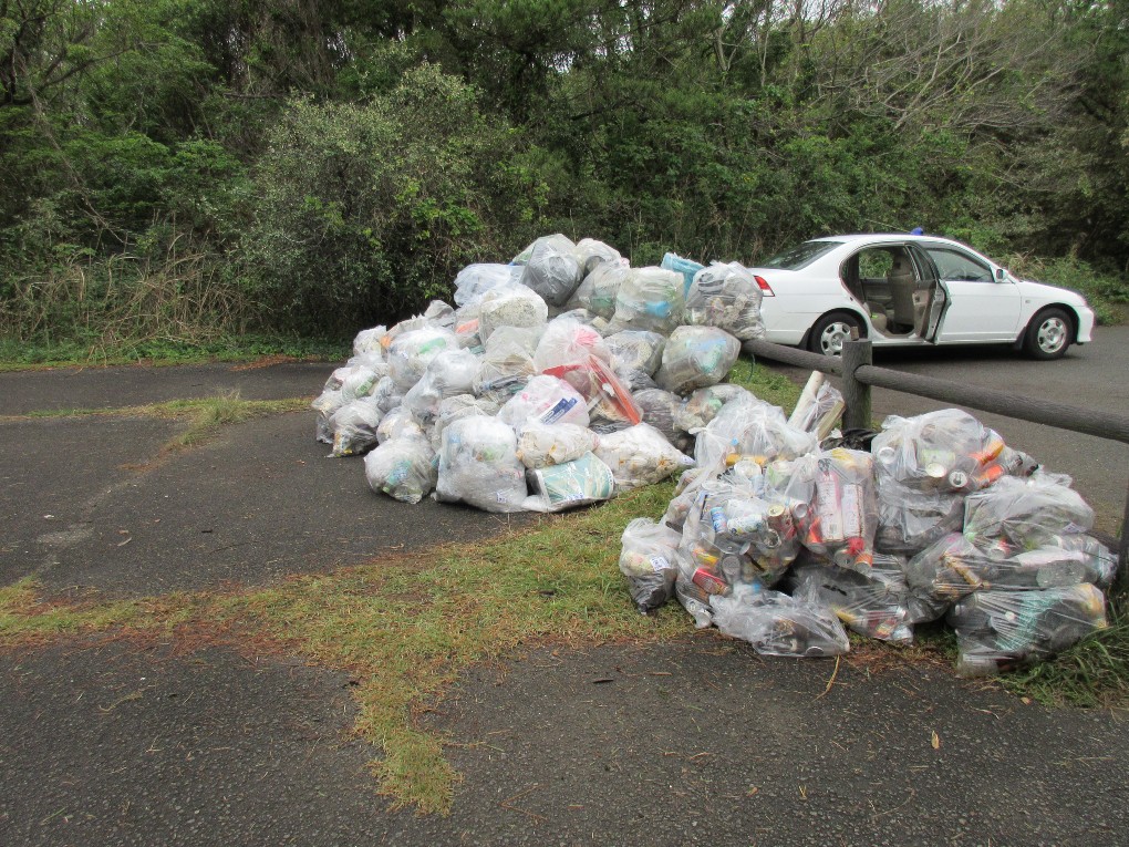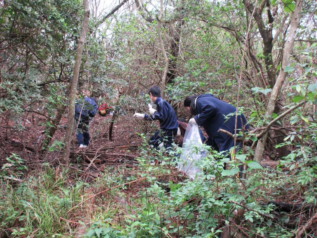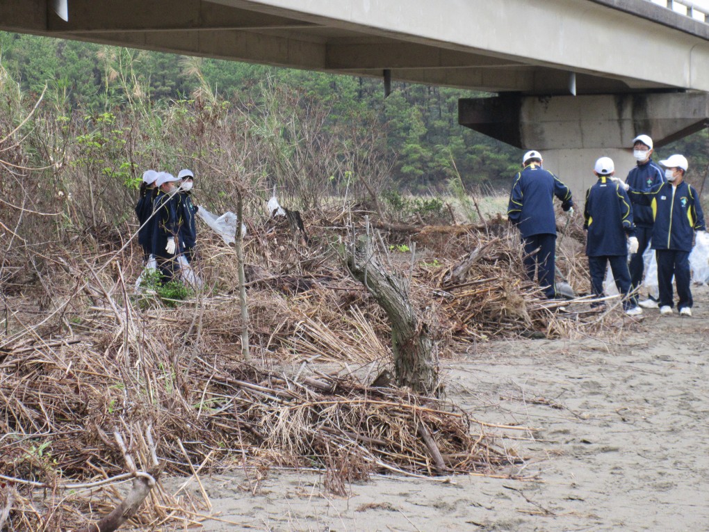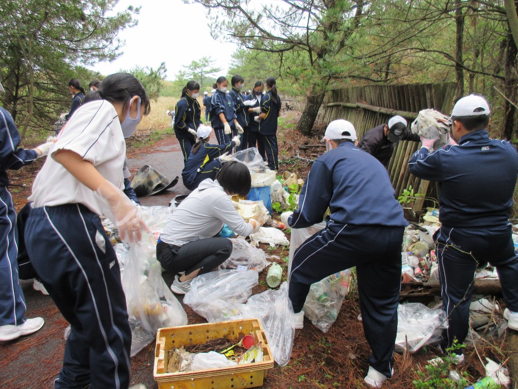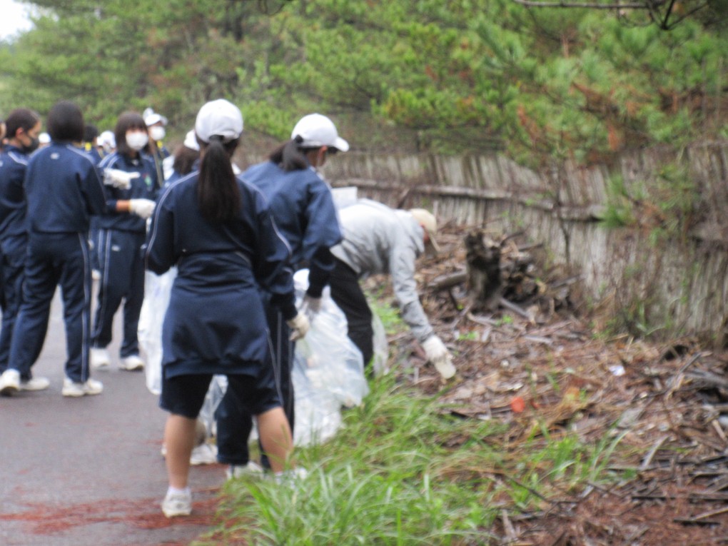 このボランティア活動は今年で13回目となりますが、毎年多くの生徒たちが自主的に参加して活動しています。今年も177名が参加しました。この清掃活動には地域の方も122名が参加しスタッフ等合わせて330名で行われました。約1時間の清掃活動でペットボトル、プラ、缶、ビンやその他いろいろな燃えるゴミ、不燃物を軽トラ4台分回収しました。今年は昨年の約半分位のごみでしたが、相変わらず家庭ごみの不法投棄や粗大ごみがあちこちに散乱していました。生徒たちにとっては貴重なボランティア体験だったことでしょう。